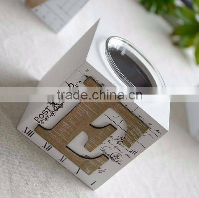 Hot Sell White Gray Color Retangle Wooden Candle Holder Glass for Decoration