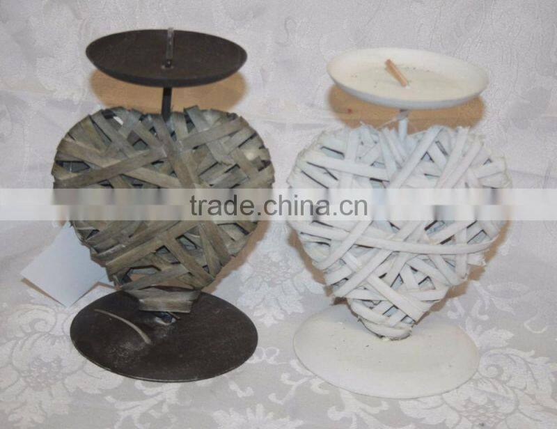 Wholesale Wicker Heart Wooden Candle Holder for Christmas Decoration