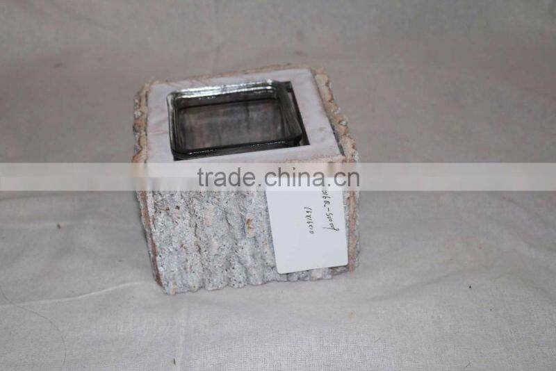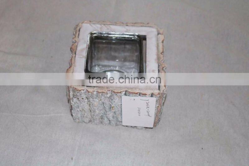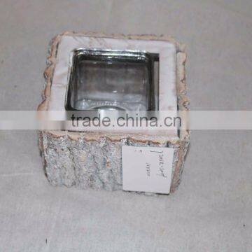 Hot Sell White Gray Color Retangle Wooden Candle Holder Glass for Decoration