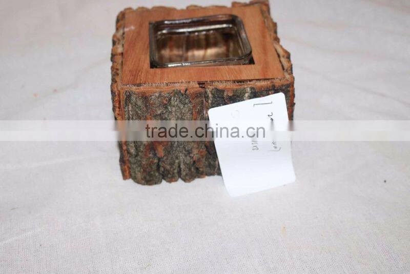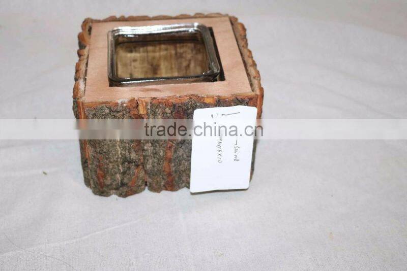 Cheap Natural Color Wooden Candle Holder Glass for Decoration