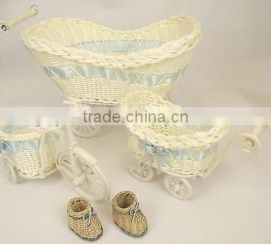 SMALL or LARGE Baby Pram Hamper Wicker Basket for Baby Shower Gifts
