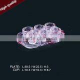 Diamond Shape Whiskey Crystal Glass Cup Drinking Set With Glass Tray