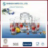 2015 New Hot Selling Drinking Glassware Set, Glass 7pcs Water Set With Decal