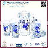 New Popular High Quality Heat Transfer Printed Glass Water Set Wholesale 7 Pcs Glass Water Jug Set
