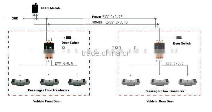 Our Counters need to connect GPRS module RS485 Interface,then send passenger data through GPRS network to controlling center after GPRS distinguish the RS485 communication protocol,which will be supplied by us.