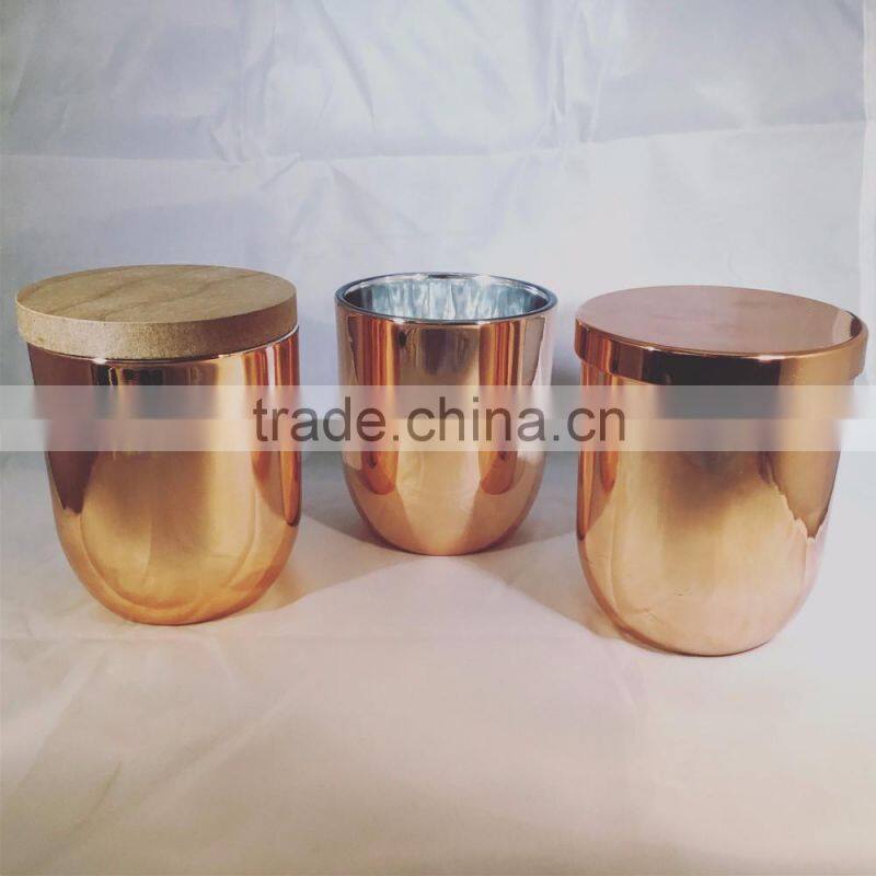 Plating Copper Glass Candle Jars Votive Candle Holders With Lids