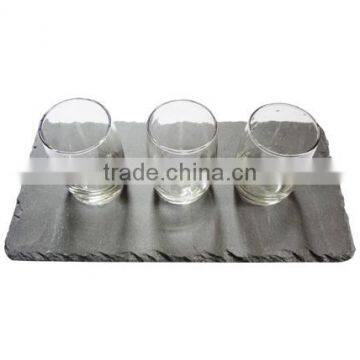30X15CM UK Style Black Slate Coaster With Clear Glass Tumbler for Promotion,best Selling Tableware and Kitchenware Coaster