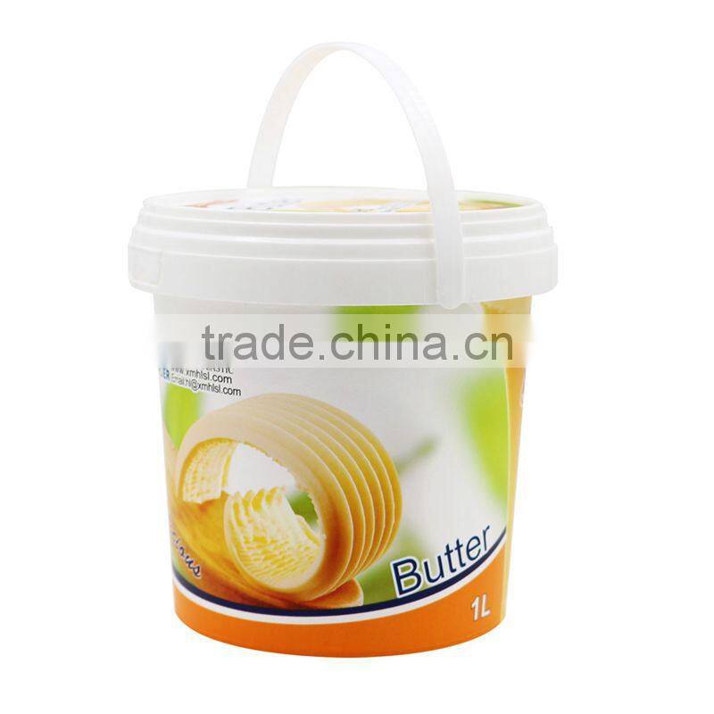 1L/35oz Thin Wall IML Plastic Injection Ice Cream Drum With Tamper Evident and Handle,Dairy Product Packaging Container