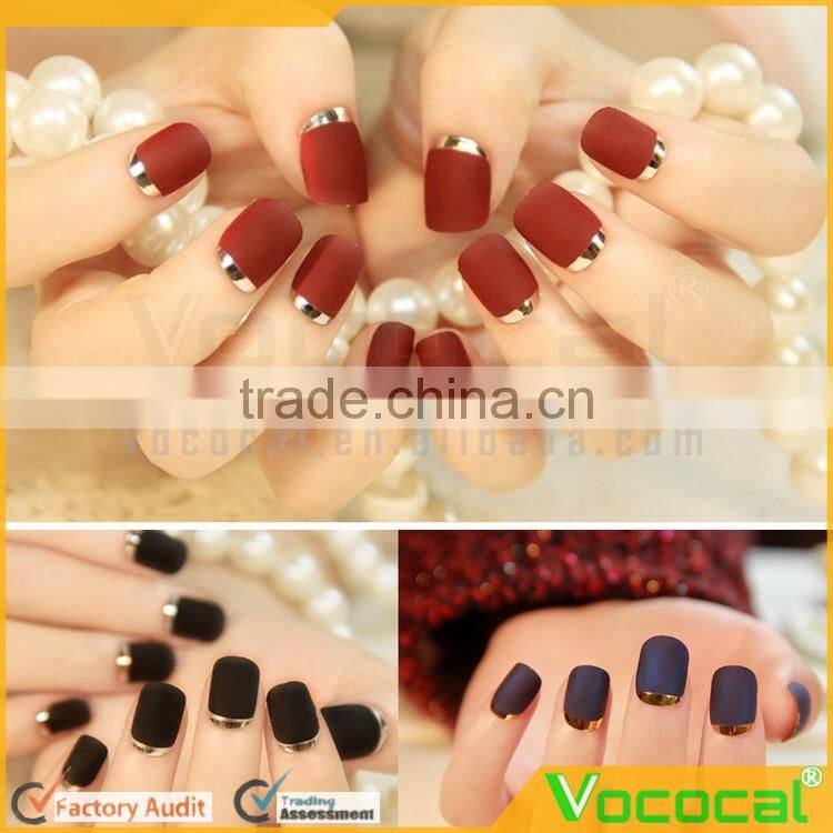 24 PCS Women Ladies Home Salon Matte With Metallic Edge French Style False Artificial Nail Art Tips Decorations