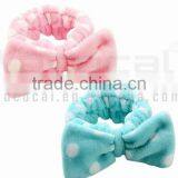 2 Pcs Flannel Women Elastic Bowknot Towel Headband Hairlace for Face Washing Makeup Cosmetic Shower Pink and Blue