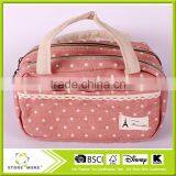 Double Layer Cosmetic Bag Pink With White Dot Travel Toiletry Cosmetic Makeup Bag Organizer!