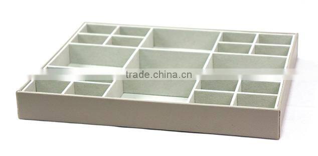 21 Compartment Desk Accessory Organizer Tray in Grey PU Leather |