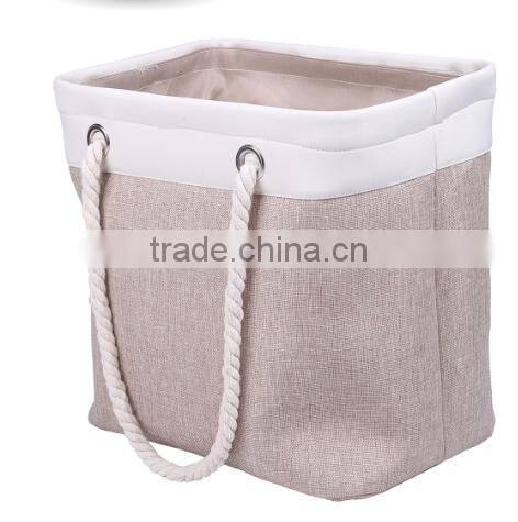 | Material | outside:TC with linen, inside:polyester; handle is cotton rope |