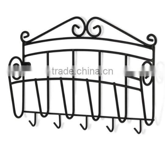 Black Sturdy Wall-Mount Key and Letter Holder |
