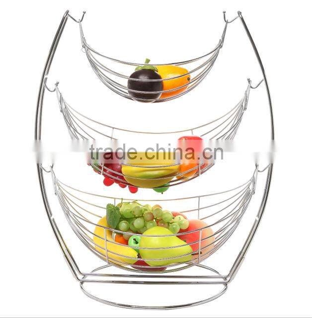 3 Tier Chromed Fruit Storage Metal Basket Rack |
