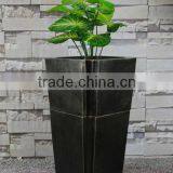 Hotel Decoration Fiberglass Tall Square Flower Pot Bronze Planter