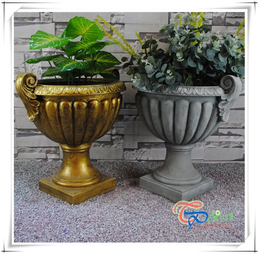 Fiberglass urn outdoor decorative handmade trophy gold foil flower pot
