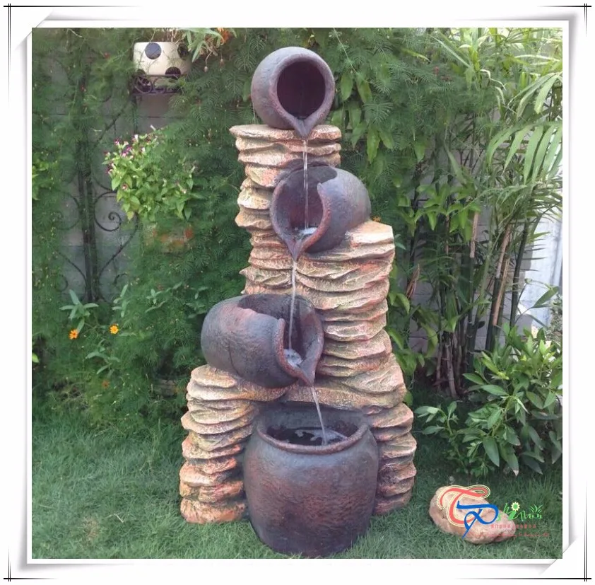 Four Jar Artificial Decoration Garden Waterfall Fountain