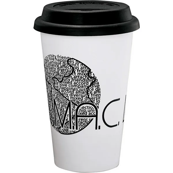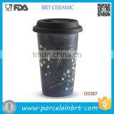 Double Walled Black Ceramic Stamp Travel Mug With Silicone Lid