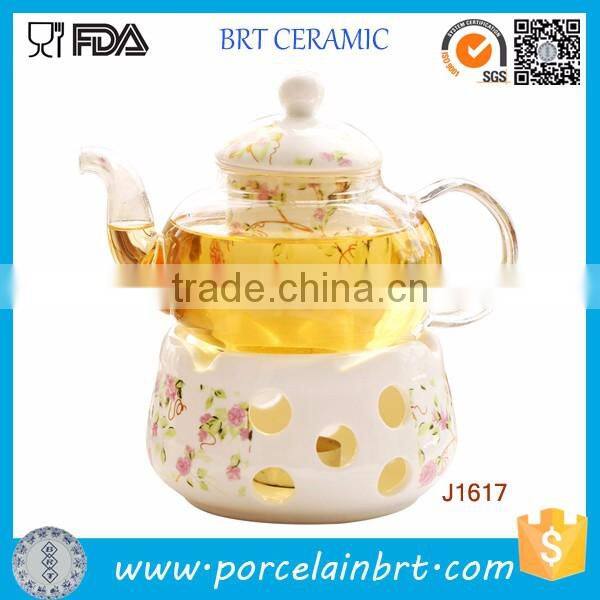Beautiful Ceramic Glass Fruit Tea Teapot With Warmer