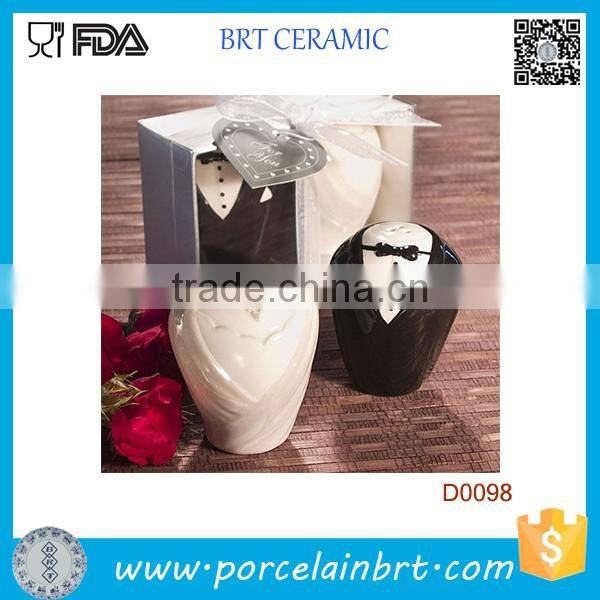 Bride and Groom Salt and Pepper Shaker Ceramic Wedding Favor