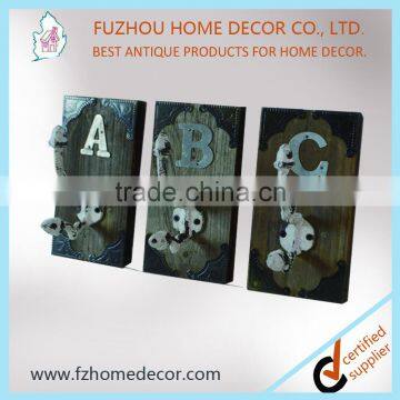 antique hanging metal hooks with wooden frame for wall decoration