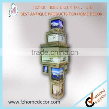 Description | This is one of our new developments,very popular among our customers antique distressed wooden photo frames with several collage frames. Can display on the corner of the wall |