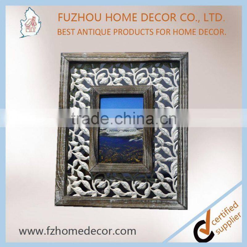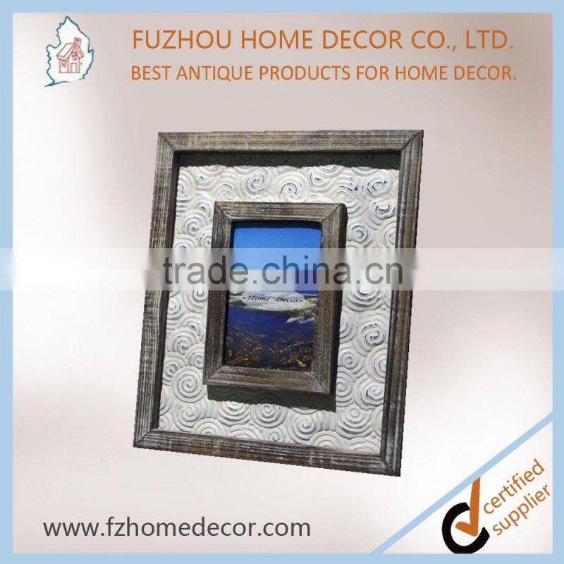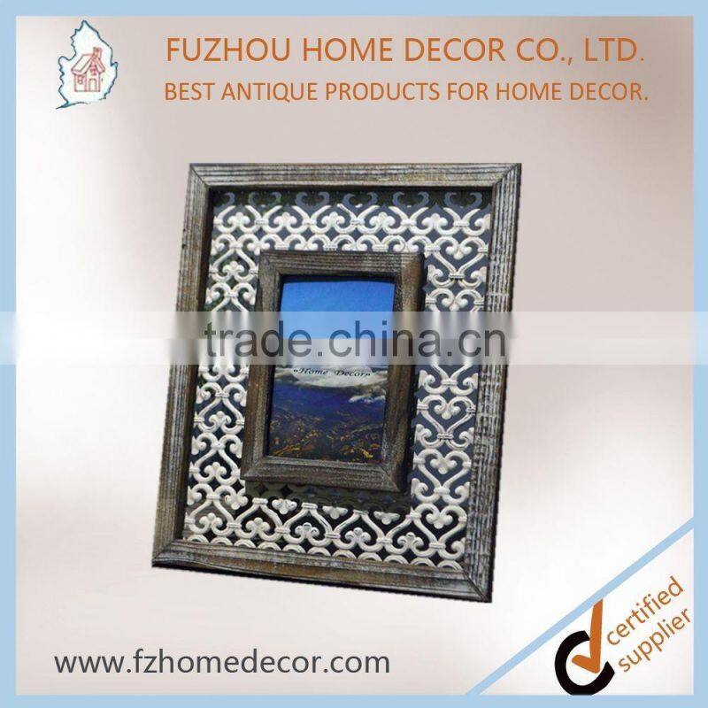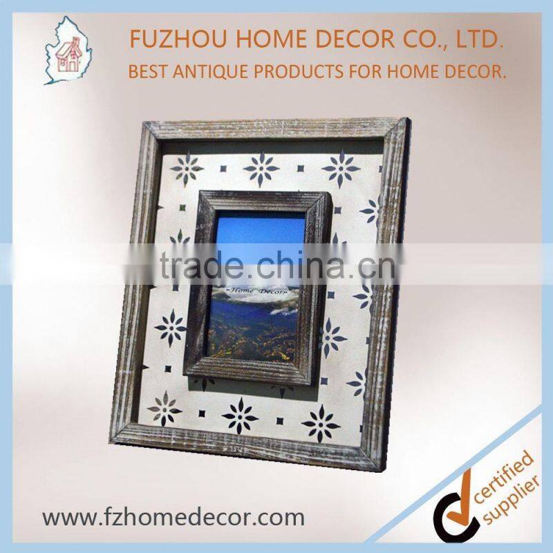 Promotional 4x6" Distressed Wooden Photo Frame With Metal Pattern Decor for Home Use
