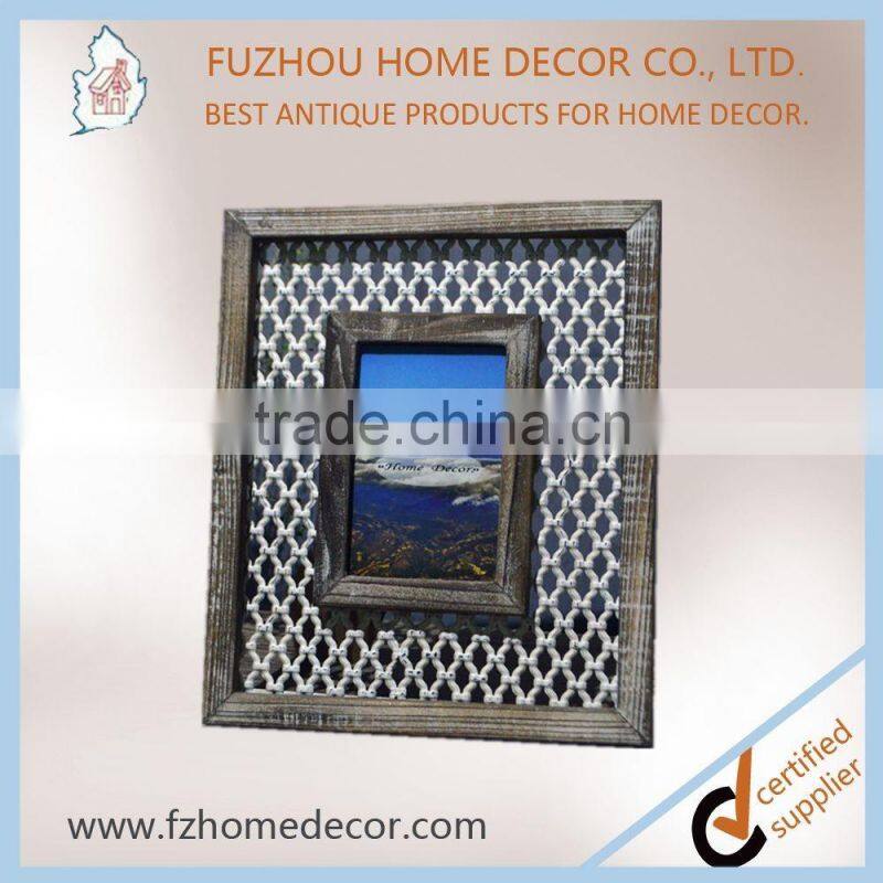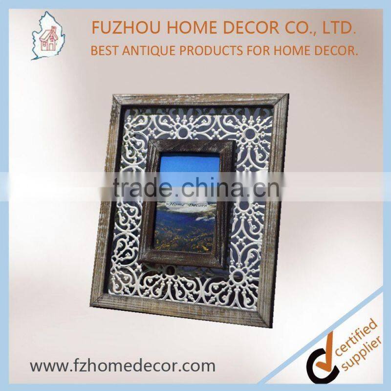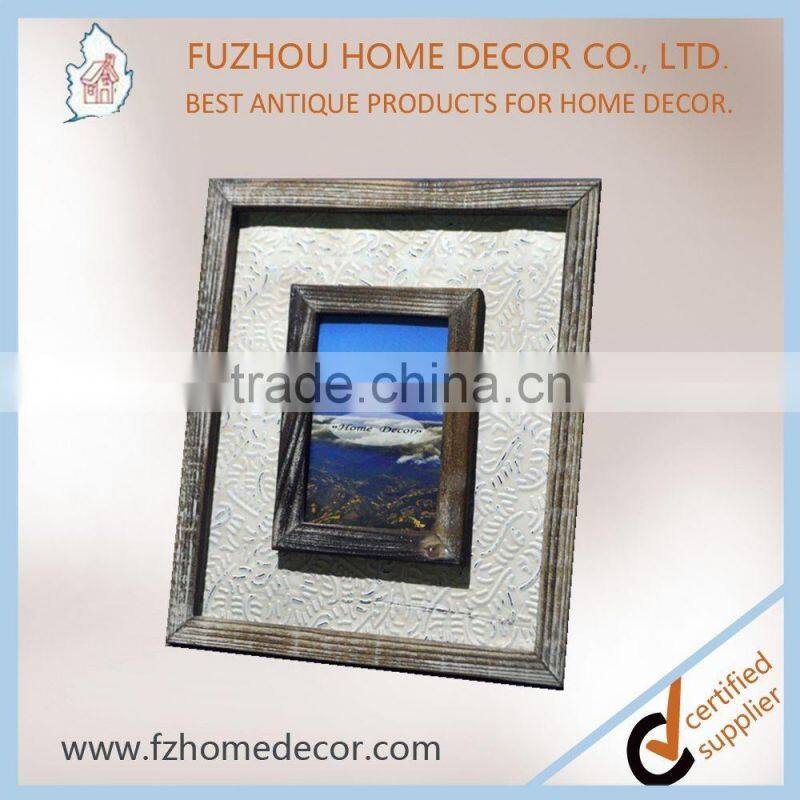 Promotional 4x6" distressed wooden photo frame with metal pattern decor for home use