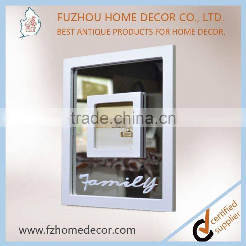 2017 new design wooden printing photo frame with mirror decor for family