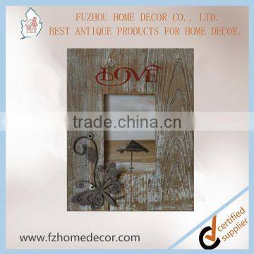 Wooden photo frame with love letter and metal butterfly decor