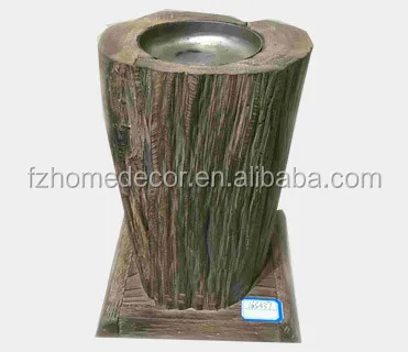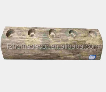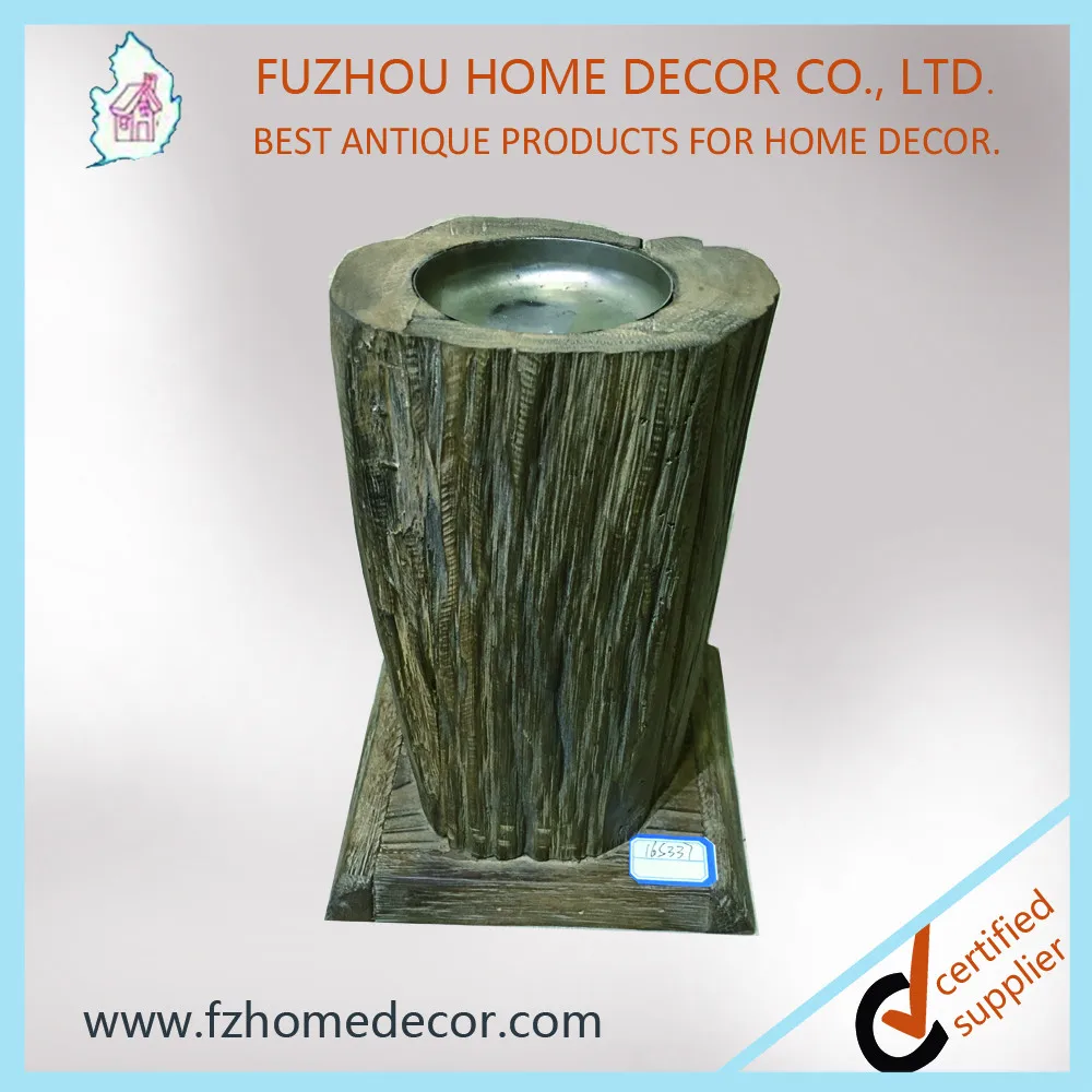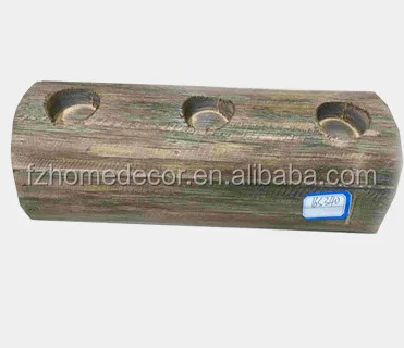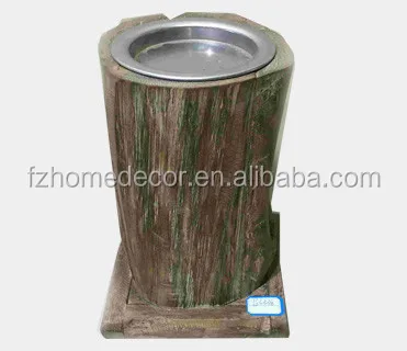 antique decorative wooden candle holder with metal platelet