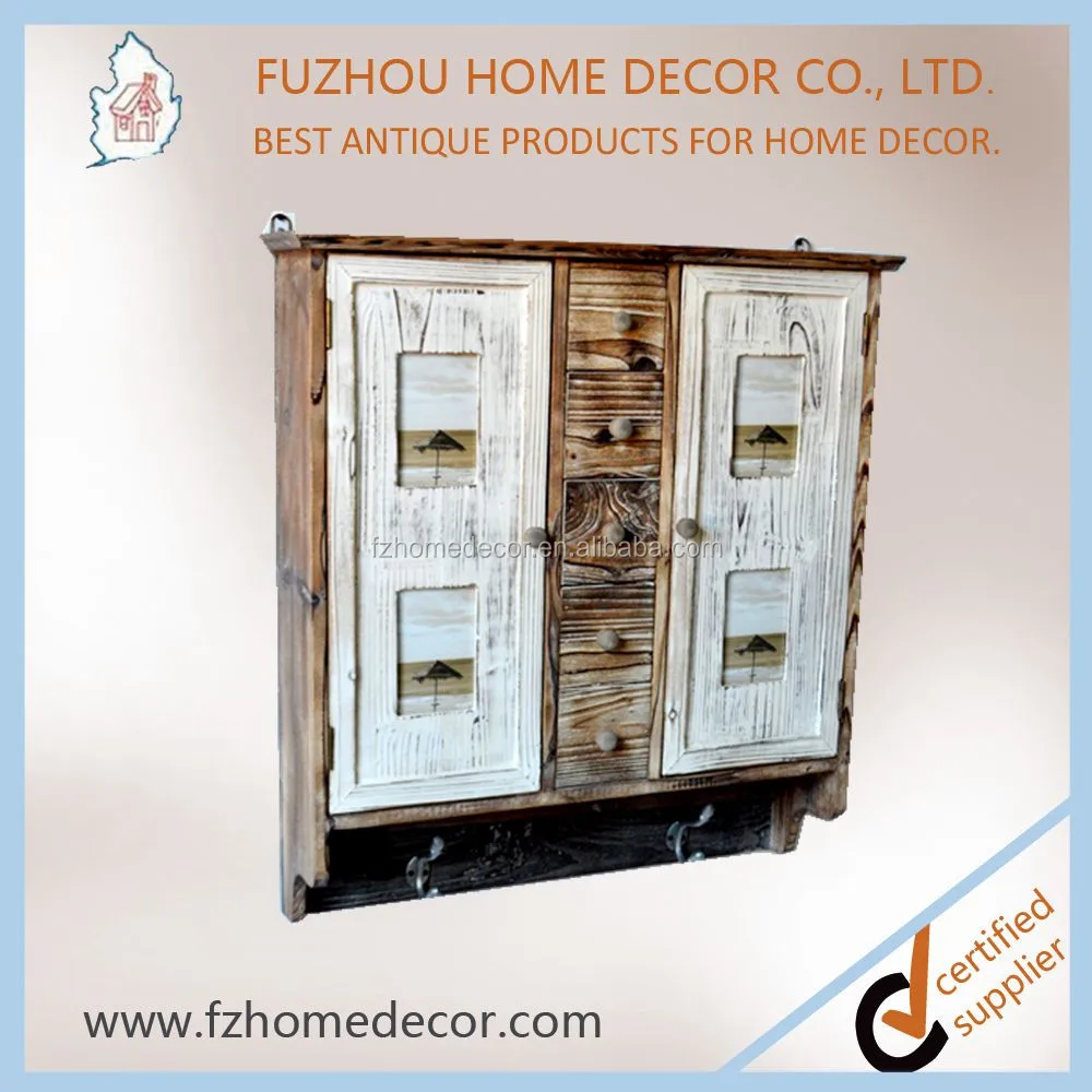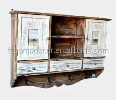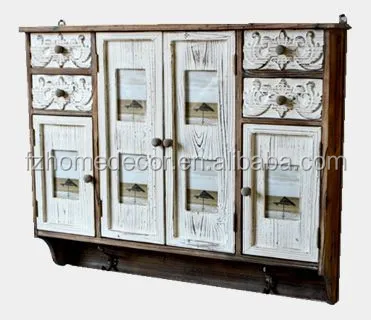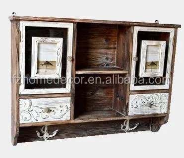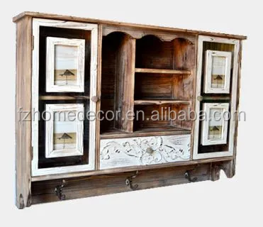 antique wooden kitchen cabinet, vintage wooden cupboard with 4 photo openings