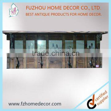 2016 new style antique natural wooden wall shelf with photo frame & hangers