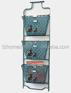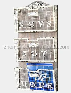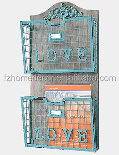 Decorative metal magazine storage holder with wooden board for wall decoration