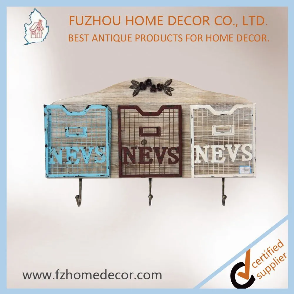 Decorative Metal Magazine Storage Holder With Wooden Board for Wall Decoration