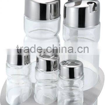 Condiment holder set condiment container&crue-stand salt and pepper set with rack Set of 5 pcs crystal bottles with stainless steel condiment holder set