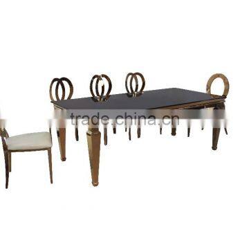 Factory Production Stainless Steel Rose Gold Rectangle Glass Dining Table