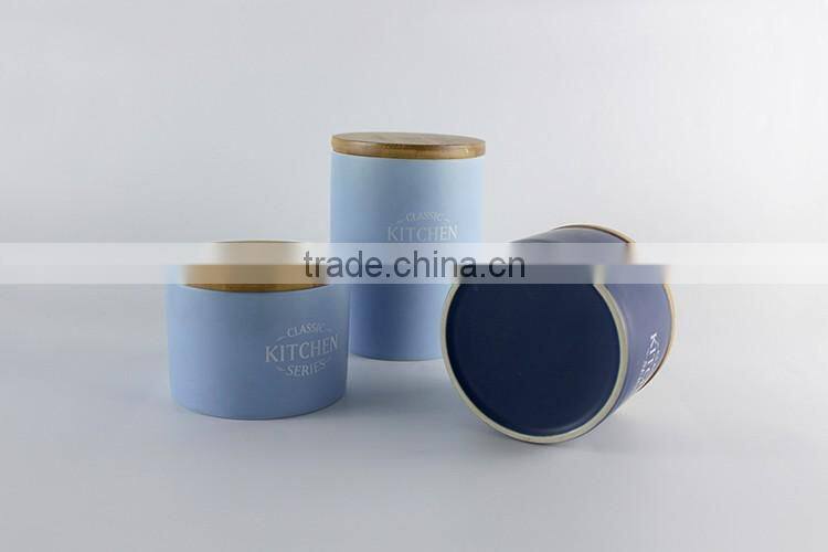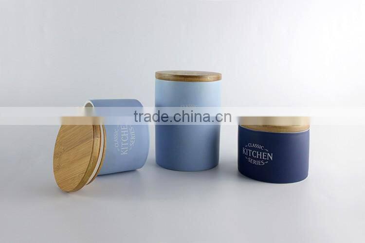 Pasta Utensil Jar Ceramic Tea Sugar Bread Biscuit Coffee Storage Canister With Wood Lid Set