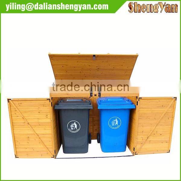Large Cedar Outdoor Wooden Garbage And Recycling Can Storage Bin Enclosures