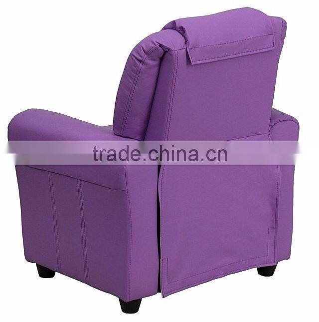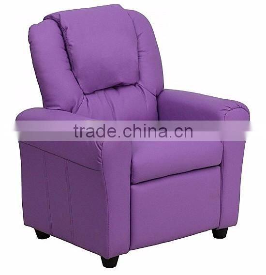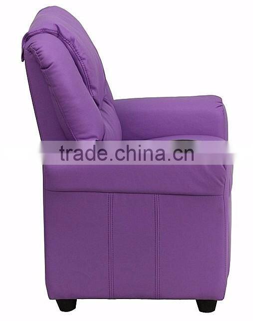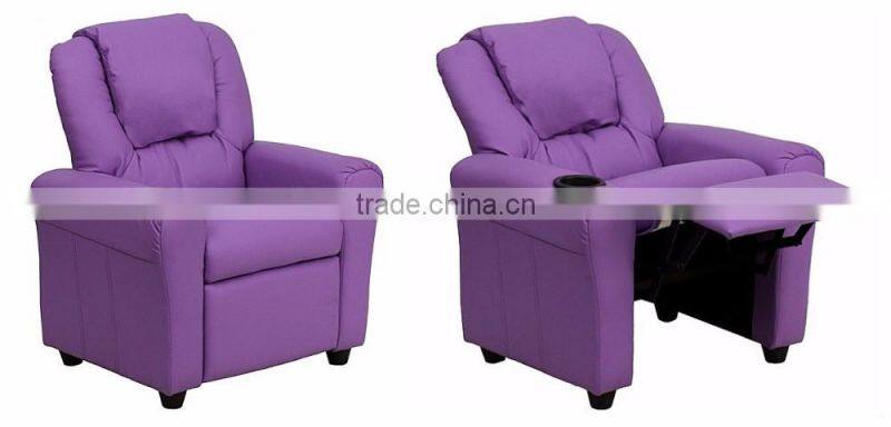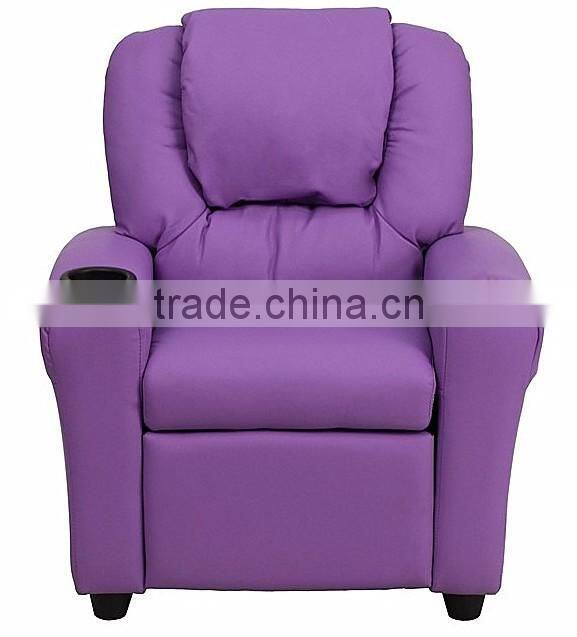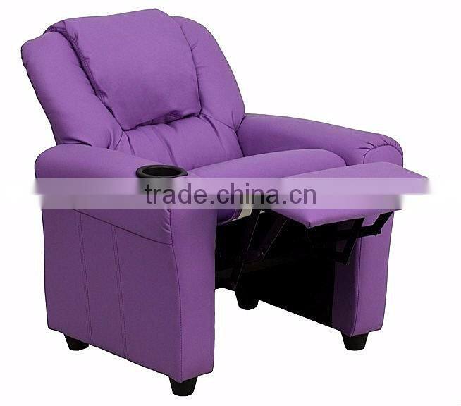 Contemporary Purple Vinyl Kids Recliner With Cup Holder and Headrest