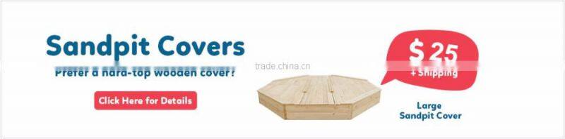 Our Sandpit comes with a UV-protected tarp as well as a internal ground sheet to prevent grass or weeds from growing into the sand play area, and also allows for water drainage.
