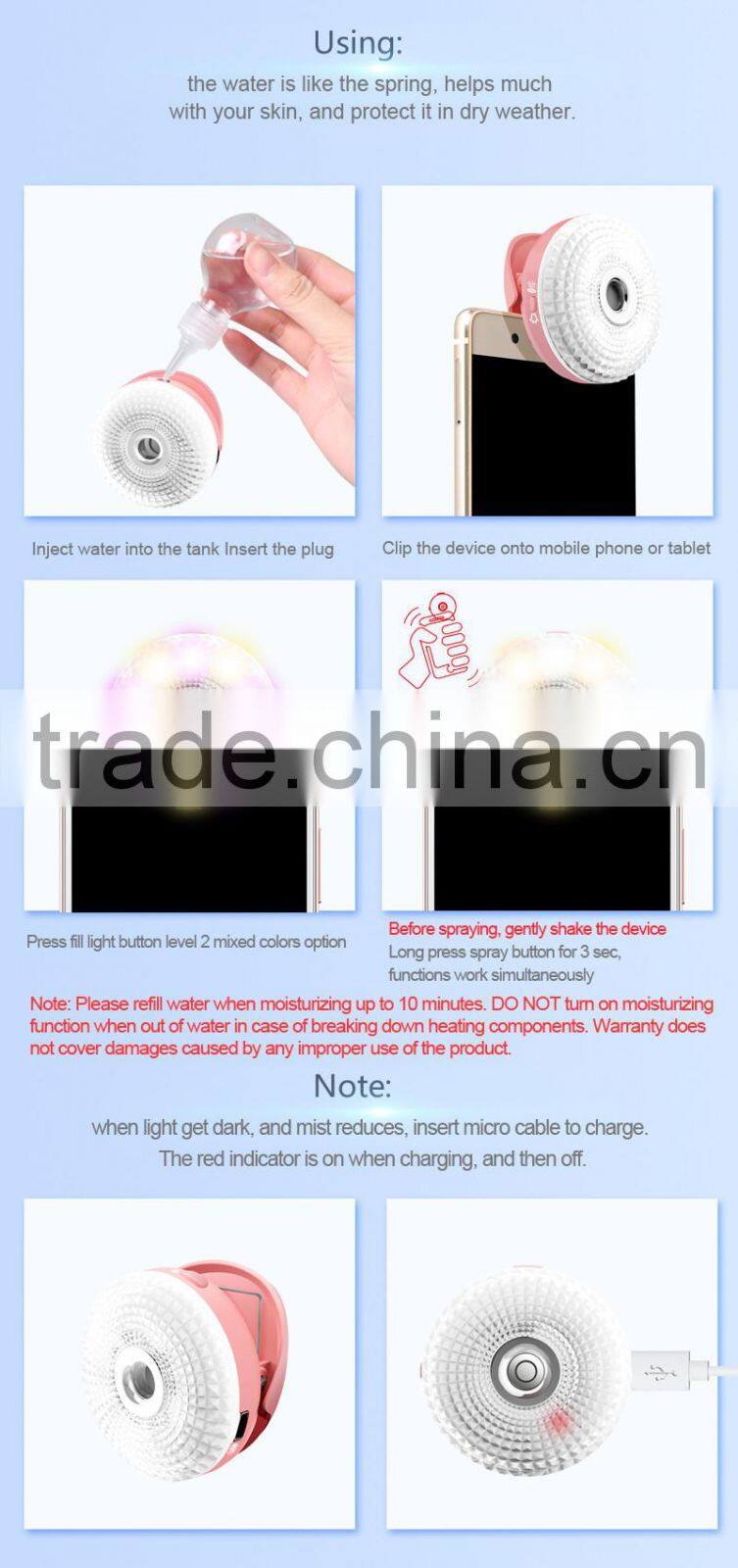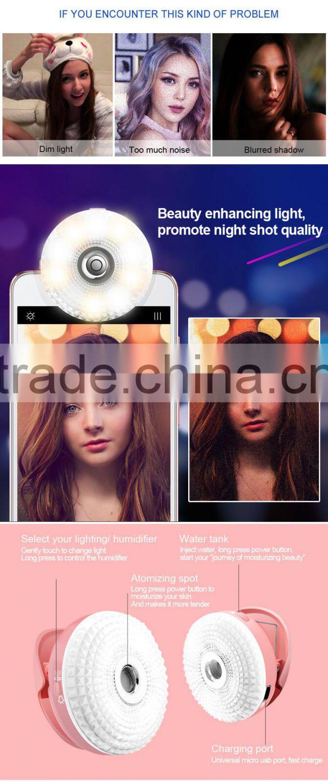 RGKNSE usb chargeable flash light Humidifie Water Diamond Skin Moisturizer Selfie Ring Light