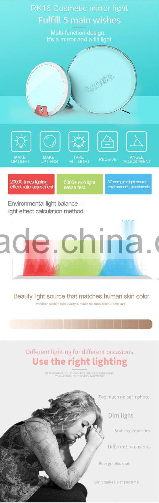 RGKNSE Fill in Light Photography Ring Selfie Flash Light With Makeup Mirror Fill Light LED Night Selfie Ring Light