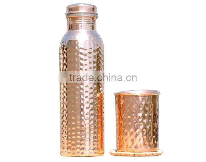 Home > Light Industry & Daily Use > Drinkware > Water Bottle > Copper Thermous Bottle With Glass | Good Health Copper Hammered Bottle