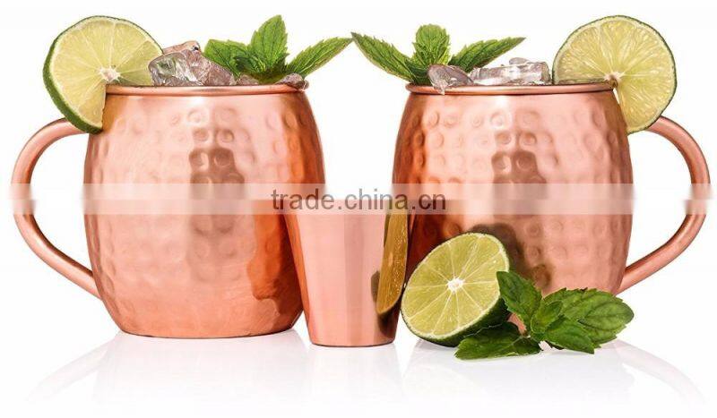 16oz Pure Copper Hammerred Moscow Mule Mugs With Shot Glass