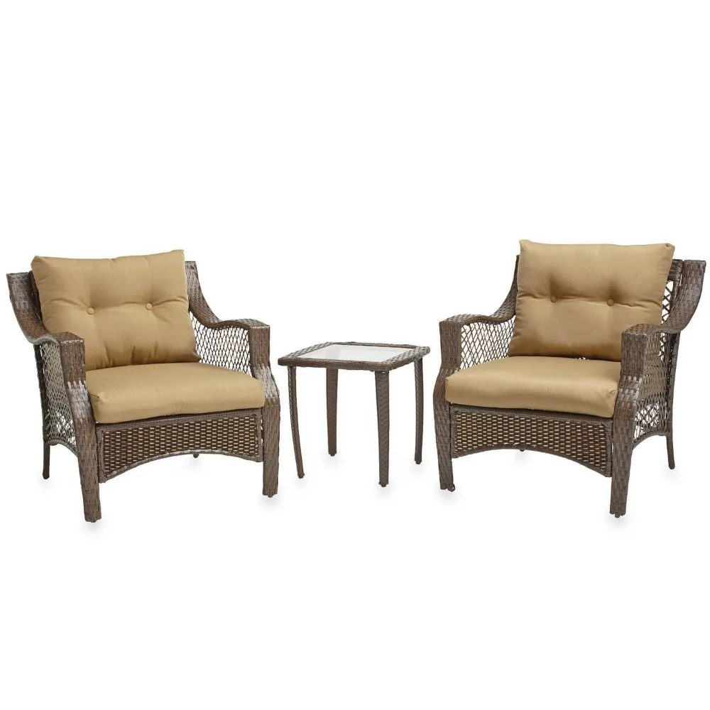 - EF-2016C-17 This 3-Piece Wicker Chair Set is ideal for placing outside for a pleasant seating area on your patio or porch.