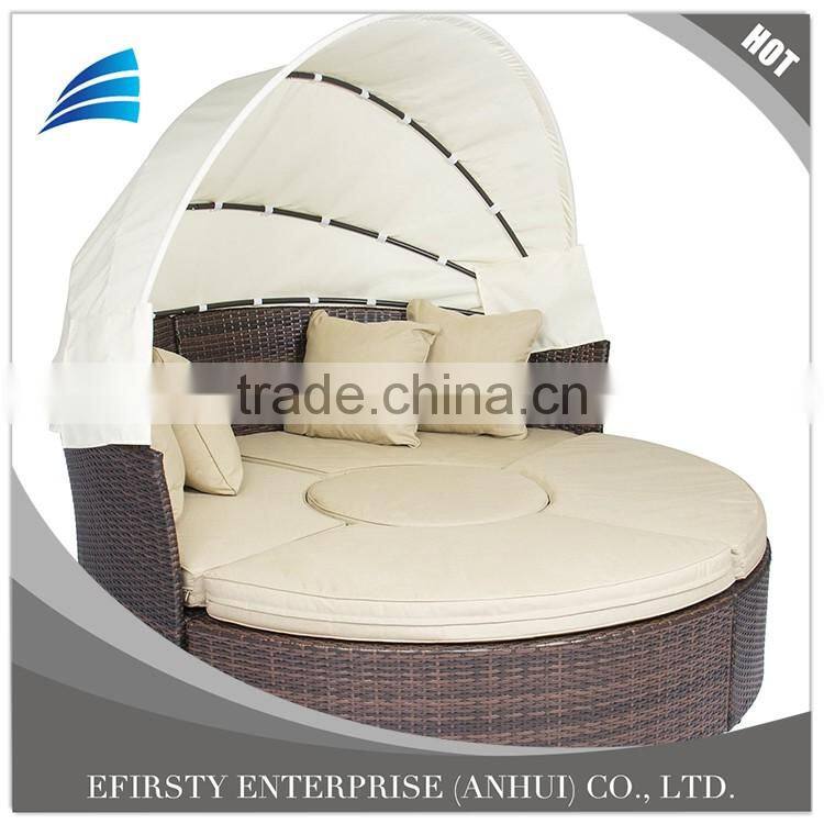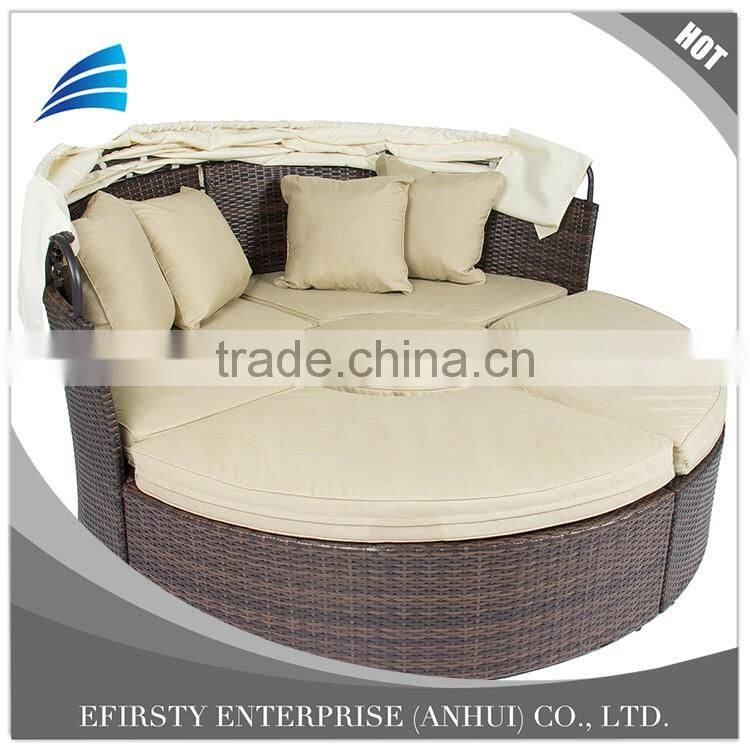 Outdoor Patio Rattan Wicker Sofa Bed Round Retractable Canopy Daybed