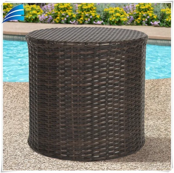Outdoor Wicker Rattan Barrel Side Table Patio Furniture