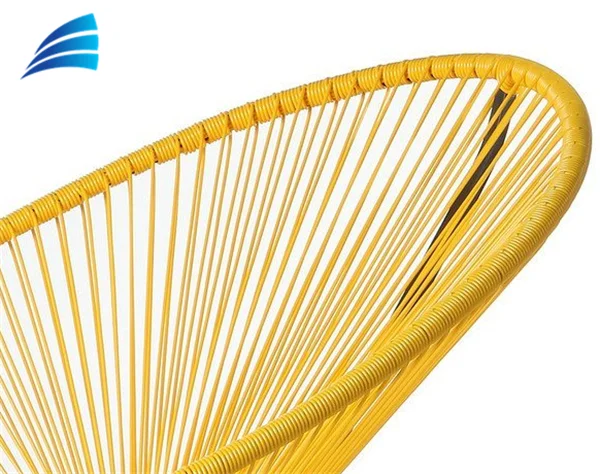 Modern lounge chair with woven UV-resistant vinyl cord for breathability and support